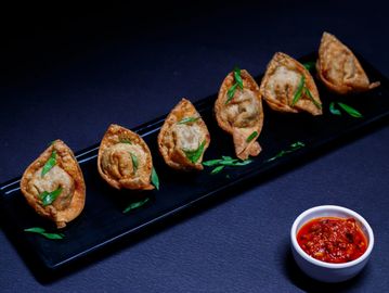 Drop wontons in the hot oil till they are crispy, golden brown in color, which makes them tempting and tasty. All the wontons are stuffed with minced chicken and mixed vegetables.