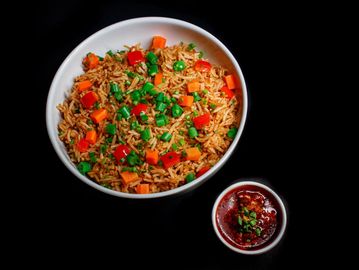 Give your mouth a hot and spicy taste with schezwan rice. Cook on a high flame, it has fried spring onion whites, carrots, French beans infused with garlic, ginge, and red chili peppers, which creates spicyflavourful taste