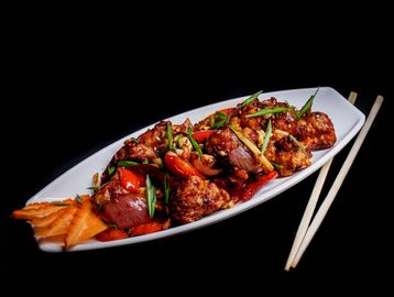 Mongolian Chicken is a flavorful stir-fry delicacy made with juicy, thinly sliced chicken tossed in a rich, glossy sauce made from soy sauce, brown sugar, garlic, and ginger. The taste is a perfect balance of sweet, salty, and savory with a subtle kick of heat and aromatic depth. Often cooked with green onions and served over steamed rice or noodles, it delivers a bold, satisfying, and slightly sticky bite in every mouthful.