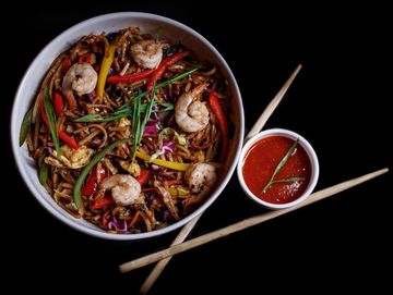 It is a savoury stir fry of perfectly cooked noodles, tossed with crisp vegetables like cabbage, carrots and bell peppers, all in a flavorful soy-based sauce. Hakka noodles with flavoured juicy pork a simple yet satisfying and offer a taste of an authentic Chinese dish.