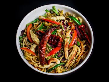 It is a savoury stir fry of perfectly cooked noodles, tossed with crisp vegetables like cabbage, carrots and bell peppers, all in a flavorful soy-based sauce. Hakka noodles with flavoured juicy pork a simple yet satisfying and offer a taste of an authentic Chinese dish.