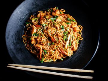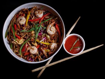 A sizzling stir fry of delicate rice vermicelli, loaded with juicy shrimp, tender chicken, and crisp, colorful veggies. Infused with bold curry spices, garlic, and a touch of soy for an explosion of flavor in every bite. Light, fragrant, and utterly delicious, try it today for a taste of Singapore's finest.