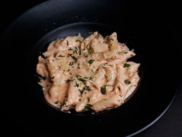 Creamy, cheesy, and packed with flavor. Al dente penne tossed in a luscious blend of rich tomato sauce and velvety cream, infused with garlic, aromatic herbs, and a hint of spice. Finished with Parmesan and fresh basil for the perfect bite. Pair it with garlic bread and indulge in pure pasta perfection.