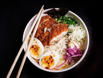 Chicken katsu ramen offers a rich and comforting flavor experience, combining the deep umami of savory broth with the crispy, golden crunch of breaded chicken. The broth is warm and flavorful, often soy or miso-based, with a slightly salty, earthy taste that perfectly complements the tender noodles. The chicken katsu adds a buttery, mildly seasoned contrast, making each bite a delicious blend of crispy, juicy, and slurp-worthiness.