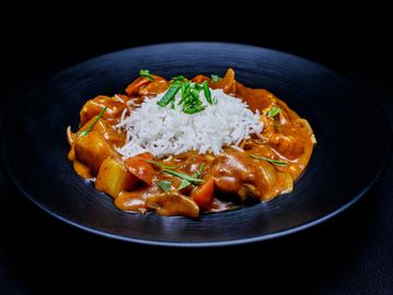 It is a rich and flavorful delicacy that blends the bold heat of peri peri spices with the smoothness of a creamy sauce. Soft, grilled paneer cubes are simmered in a sauce made from peri peri seasoning, garlic, chilli, cream and a touch of lemon, creating a spicy, tangy and velvety base. Served over steamed rice, the creaminess balances the heat, making each bite warm, comforting and full of bold flavour.