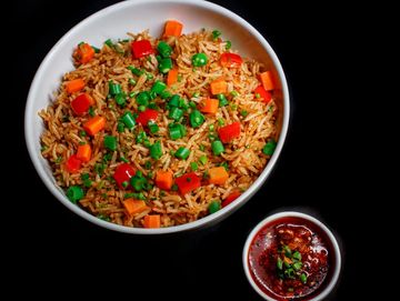 Give your mouth a hot and spicy taste with schezwan rice. Cook on a high flame, it has fried spring onion whites, carrots, French beans infused with garlic, ginger, and red chili peppers, which creates a spicy, flavourful taste.