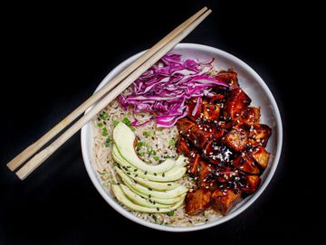 Teriyaki panner tice bowl is a vibrant and satisfying meal featuring soft, grilled paneer glazed in a rich, sweet, savoury teriyaki sauce. Served over a bed of fluffy steamed rice and accompanied by sauteed vegetables, it offers a wholesome mix of textures and flavours. The dish balances the umami depth of soy and ginger with the creamy paneer and fresh, crisp veggies, making every bite hearty, flavorful, and