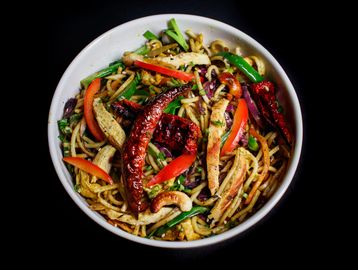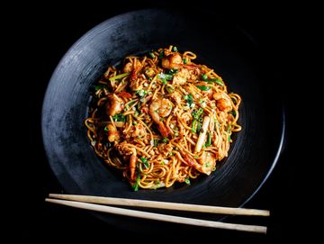A sizzling stir fry of delicate rice vermicelli, loaded with juicy shrimp, tender chicken, and crisp, colorful veggies. Infused with bold curry spices, garlic, and a touch of soy for an explosion of flavor in every bite. Light, fragrant, and utterly delicious, try it today for a taste of Singapore's finest.